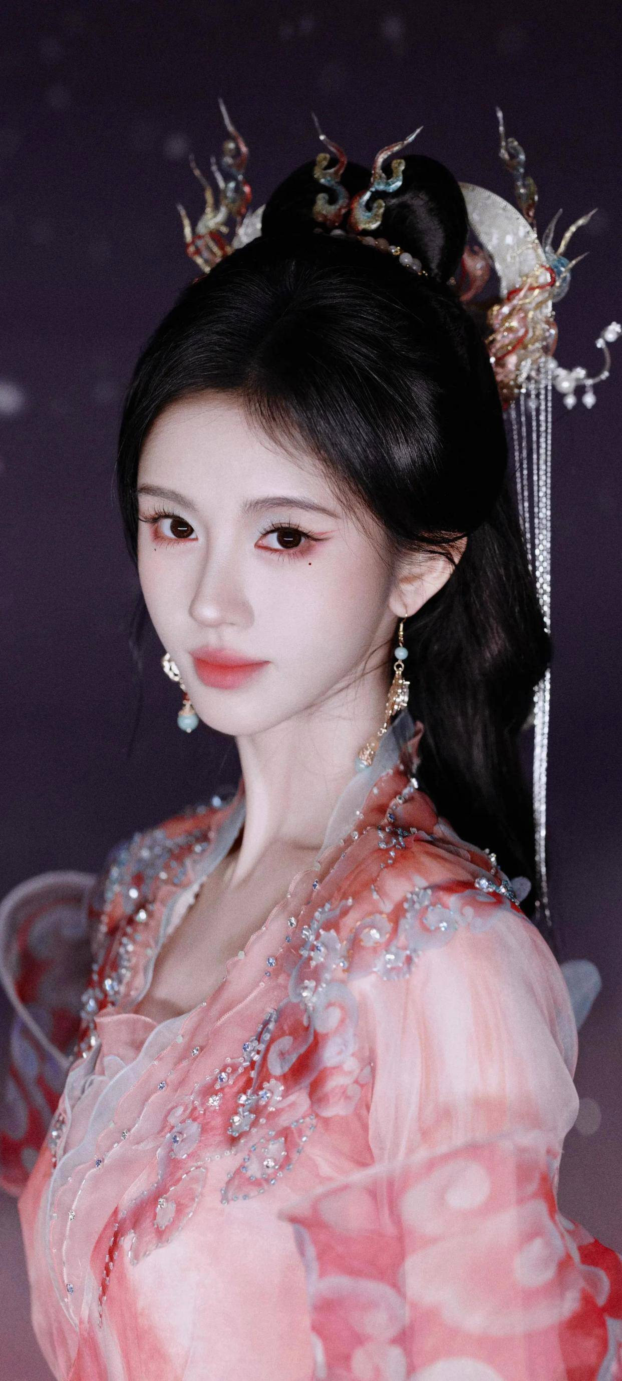 不过最让人惊艳的是她对“朦胧美”的诠释。不同于现在流行的浓墨重彩,鞠婧祎这次的妆容走“淡颜系”——细弯眉配豆沙唇,眼尾用淡粉色晕染出古典韵味,连发丝都带着柔光滤镜。有造型师分析,这种“若隐若现”的美感,恰好呼应了古画中“远山含黛,近水含烟”的留白艺术。难怪评论区都在刷:“终于不是千篇一律的网红脸了!”